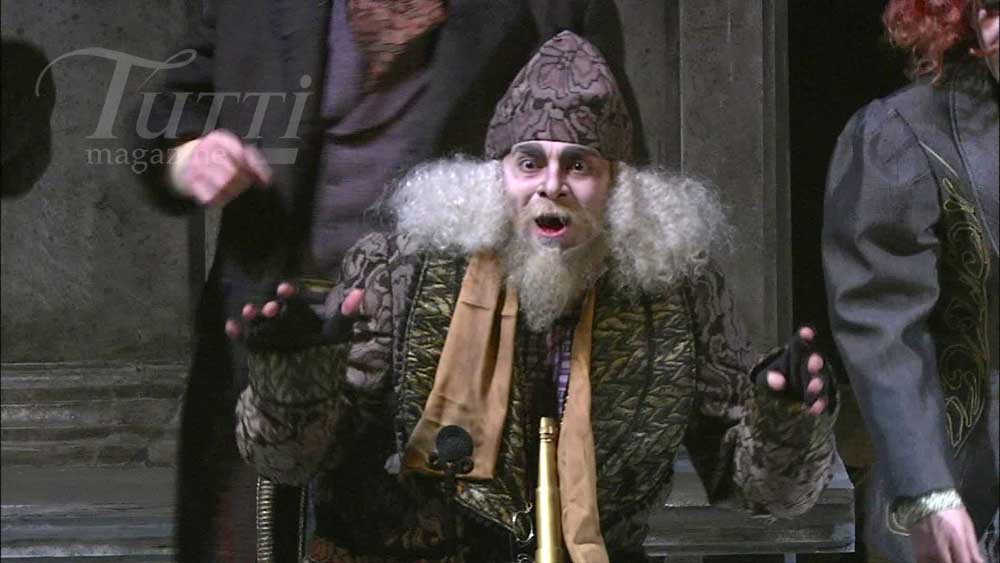 Annamaria Chiuri, nous l'avons dit, se démarque franchement de la distribution par ses costumes extravagants. Mais ceci n'empêche aucunement la mezzo-soprano de tirer son épingle du jeu dans les diverses tenues qu'elle arbore sur scène : clocharde invraisemblable issue d'un film de Jean-Pierre Jeunet, figure puissante d'ange de la mort glacial surmonté d'un chapeau-corbeau, et autre tante envieuse rongée par l'avarice…